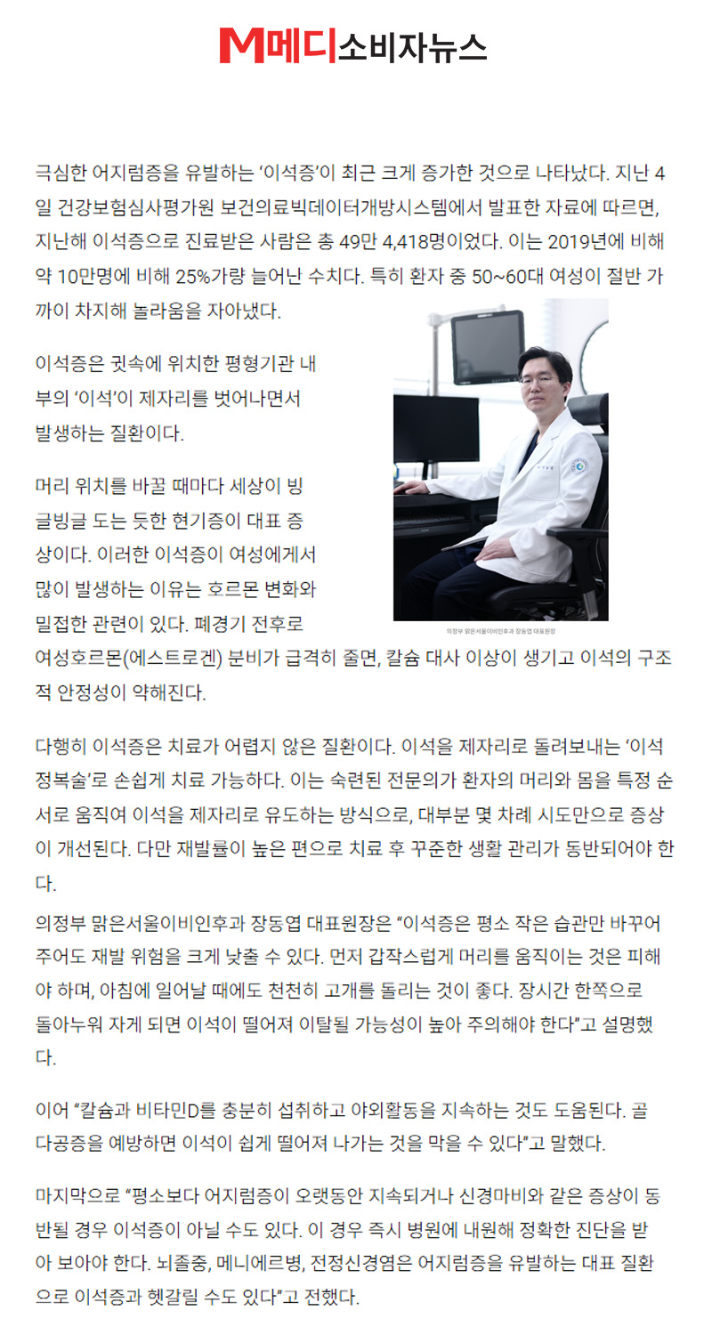 남성보다 여성에게서 더 많이 발생하는 ‘이석증’ … 방치 말고 적극 치료해야